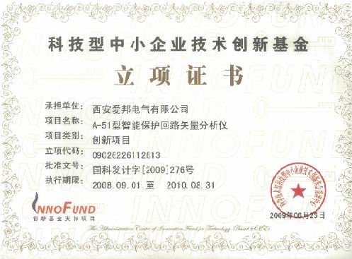 • 科技部創新基金立項證書